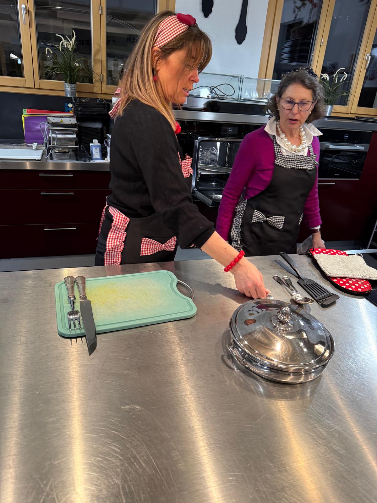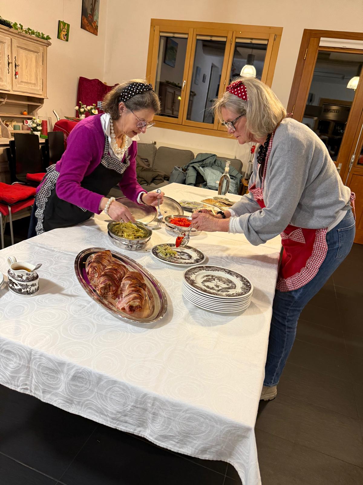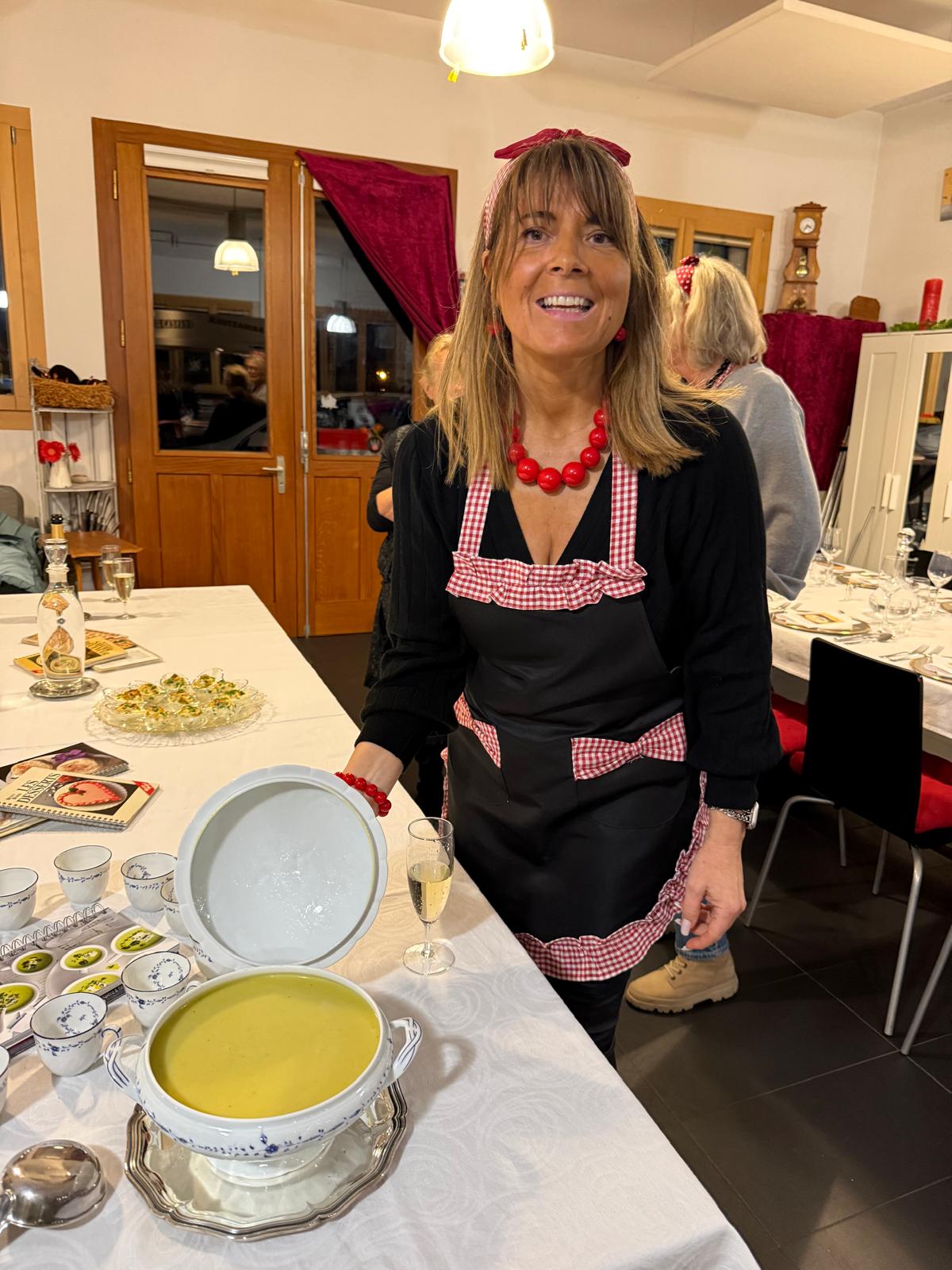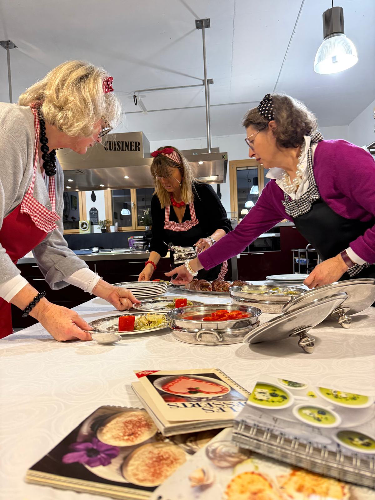 Une parenthèse gourmande et chaleureuse, où convivialité et plaisir de recevoir étaient à l’honneur. Autour de notre table, chacune a savouré ce moment simple et précieux, sublimé par notre clin d’œil aux traditions d’autrefois : tabliers vintage, belle vaisselle sortie pour l’occasion, service soigné à l’assiette et plats présentés comme on le faisait avec fierté il y a quelques décennies.