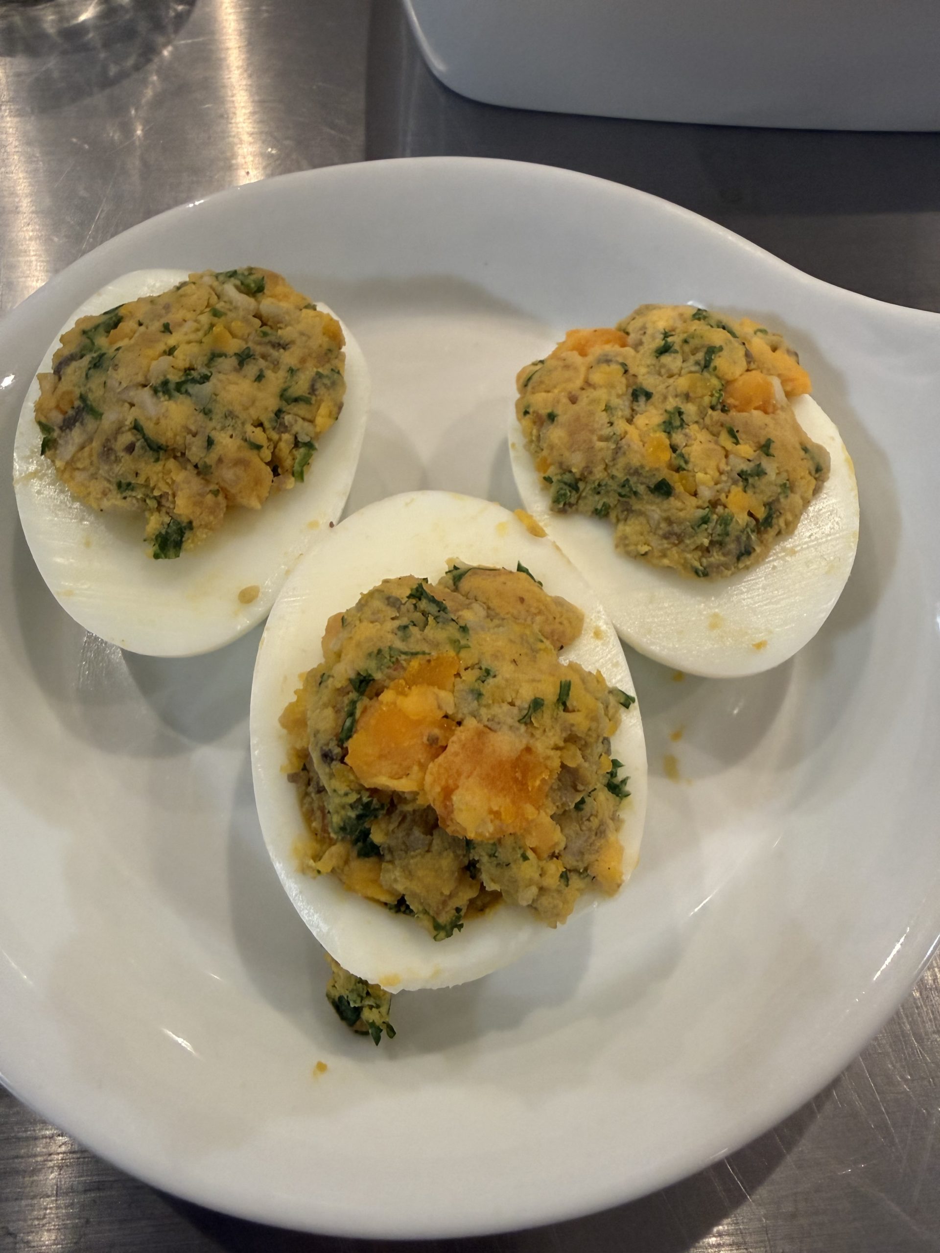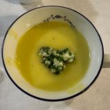 L’entrée l’entrée avec un délicieux poisson, accompagné de lentilles jaunes au curcuma et pour le plat d’un chou farci, servi avec une onctueuse, purée de lentilles, apportant rondeurs et profondeur au plat.